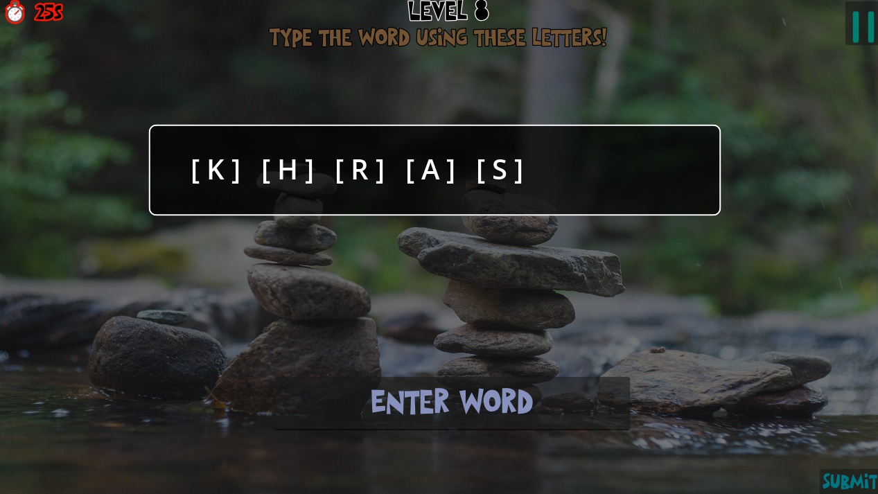 Challenge your mind and expand your vocabulary with WordNest, an engaging word puzzle game for players of all ages! Rearrange scrambled letters to form correct words before time runs out and explore hundreds of words across categories like Animals, Nature, Food, Objects, People, and more. Every level is a new adventure!